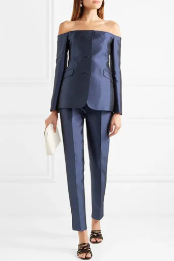 Он хорошо смотрится с синими брюками и жакетами в тон к блузке с цветочным рисунком в пастельных тонах. Они смягчают строгий деловой вид и делают его более романтичным. Пиджак не обязательно должен быть синим. Вы можете выбрать белую блузку и жакет асфальтового оттенка или сине-дымчатого оттенка в сочетании с насыщенными брюками. Для образа в стиле диско подойдет черный кружевной топ и короткий жакет цвета фуксии.
