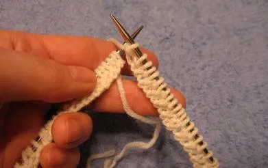 Проденьте правую спицу в первый стежок на левой спице и продолжайте вязать как обычно: